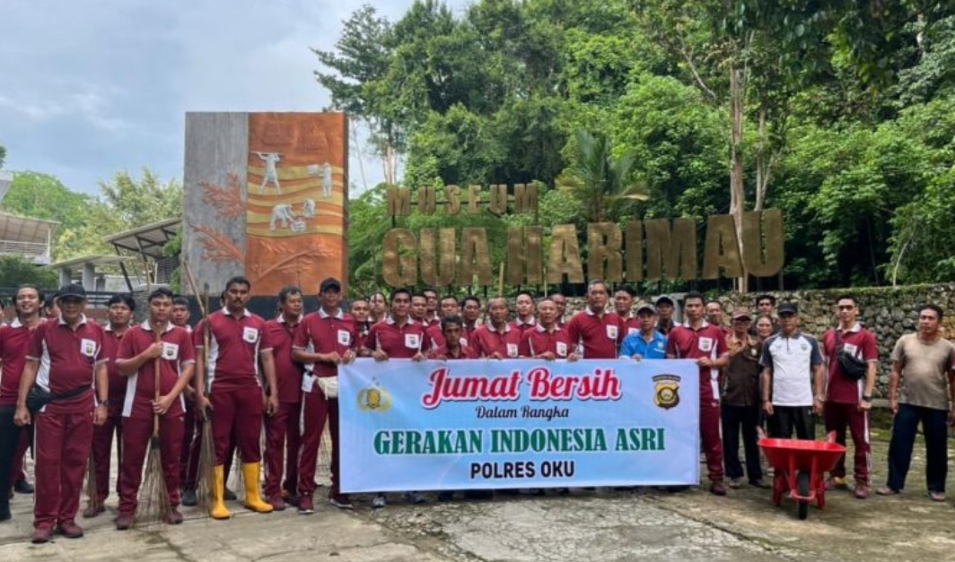Baturaja, penasriwijaya.com – Dalam rangka mendukung Gerakan Indonesia ASRI (Aman, Sehat, Resik, Indah) Kepolisian Resor (Polres) Ogan Komering Ulu (OKU) melaksanakan Kegiatan Jum’at bersih bertempat di kawasan objek wisata Museum Gua Harimau dan Gua Putri, tepatnya di desa Padang Bindu Kecamatan Semidang Aji. Jumat (6/2/2026) pagi.